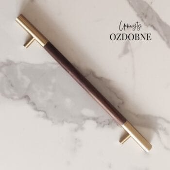 Uchwyt meblowy drewno kolor orzech i mosiądz długość 140mm